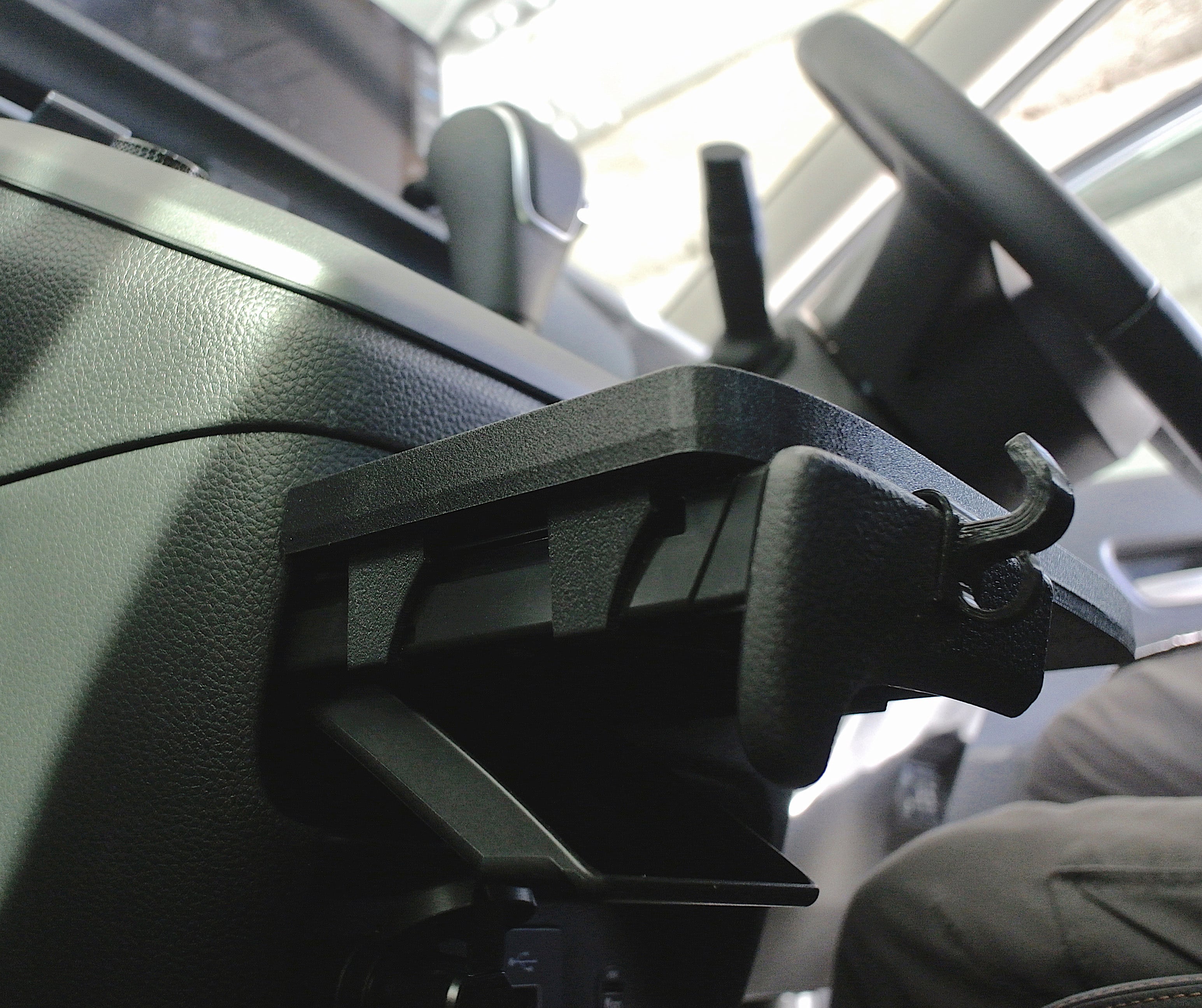 収納式ドリンクホルダーに4箇所のツメで取付けるミニテーブルをオリジナル設計 作製した3Dプリント品です。
